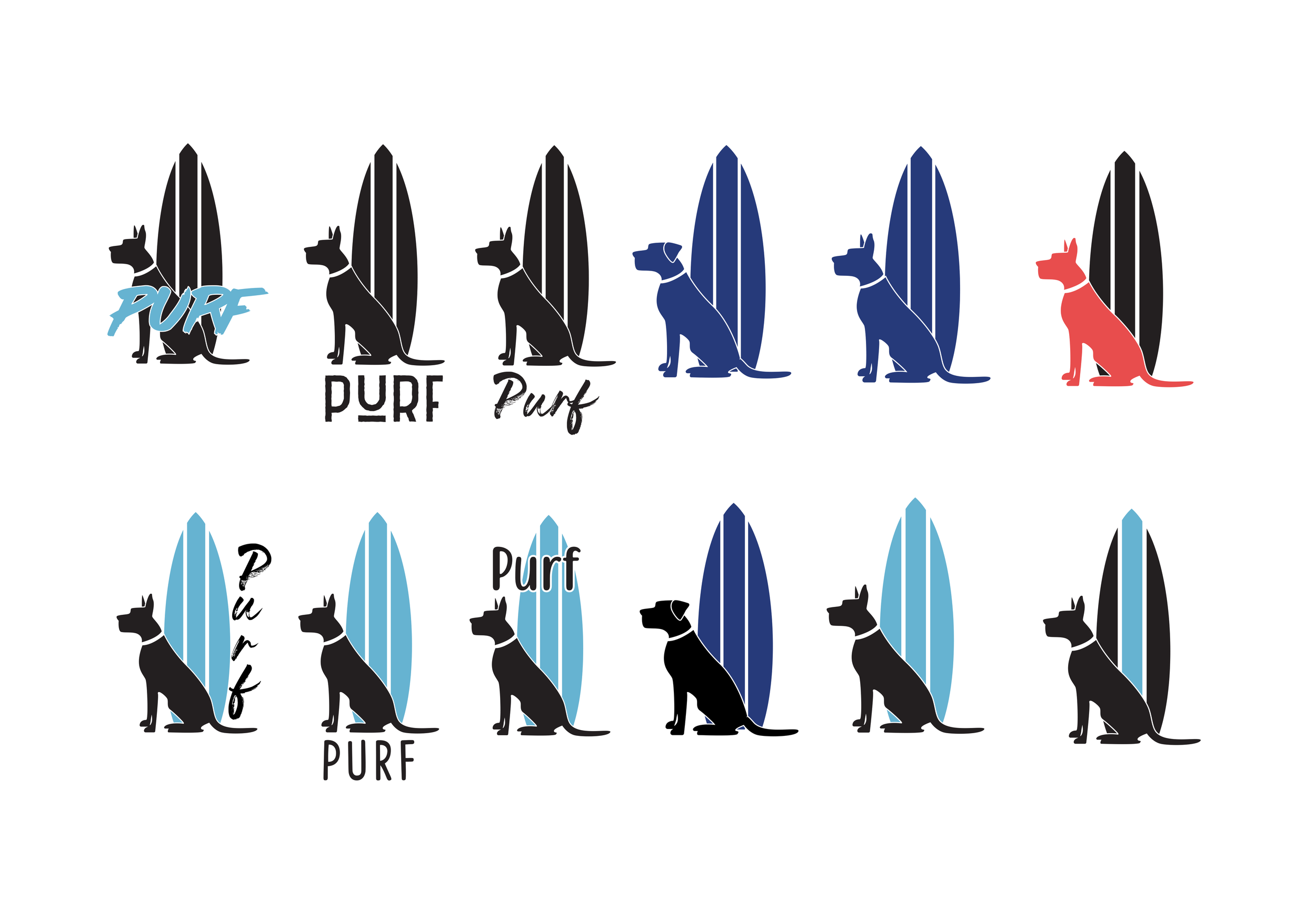 Nothing is more recognizable than a dog’s silhouette. The only difficult thing was deciding on whether the dog ears should be up or down. As much as surfing is it is something that needs a lot of focus and a dog with lifted ears is more alert. Blue was going to be given to represent water. I wanted the typeface to feel a little rough and have a beach vibe that is friendly. Batavia Sans stood out the most to me and looked well with the illustration. The typeface Congratulations had a nice handwritten look that fit the whole vibe of the company.
